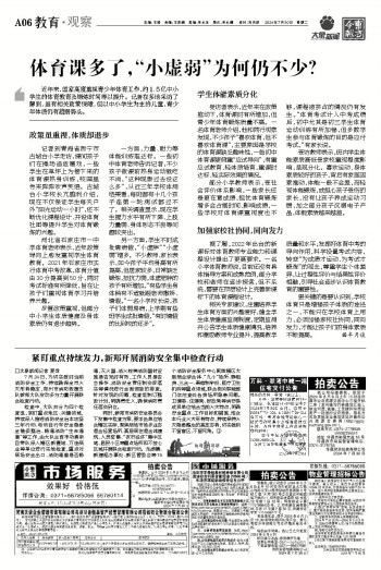 近年来,国家高度重视青少年体育工作,约1.5亿中小学生的体育教育及锻炼时间得以提升。记者在多地采访了解到,虽有相关政策保障,但以中小学生为主的儿童、青少年体质仍有趋弱势头。