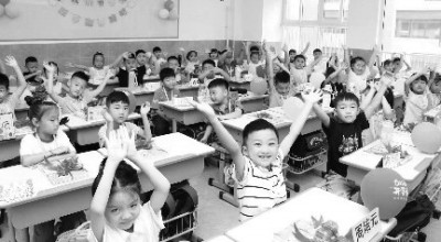教室里也是装扮一新。每个孩子的座位上都有“三件宝”——彩色气球、姓名标牌、新课本。尤其是新课本上那红艳艳的大蝴蝶结,让孩子们感觉喜庆又亲切。