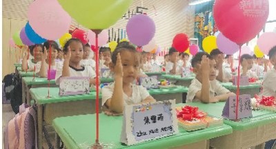 9月2日,郑州市中原区西悦城第一小学举行以“满‘新’欢喜,未来有你”为主题的一年级新生入学仪式。