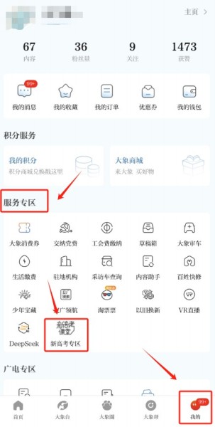 也可以登录大象新闻客户端后,点击—我的—服务专区—新高考课堂。
