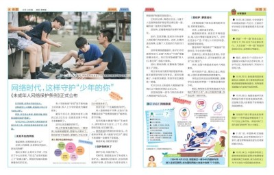 有读者可能会问,啥是护苗行动?其实,细心的读者一定早就发现啦,在《阳光少年报》和初中版《大少年》的报头位置,添加有“护苗行动,护助成长”的标识。在报纸上也会不定期地出现“护苗行动专栏”——我们专门选择那些能够帮助孩子们增强安全意识、提升法治素养、提高辨别能力以及学会保护自己的新闻故事,讲给他们听。同时,引导孩子们多读书,抵制低俗内容,培养健康的心理。