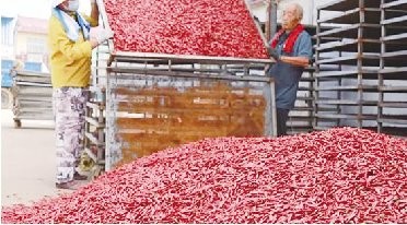 在大面积种植辣椒后,付楼村又引进了辣椒烘干设备,对种植的辣椒进行深加工,每天可以烘干鲜椒12000余斤、干椒5000余斤。