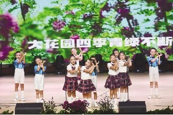 同其他队伍不同,来自周口市沈丘县东城办事处李安庄村的程楼小学合唱队,成员全部是二年级小学生。他们带来的《沙颍河在我家拐了个弯弯》,唱出了广大村民过上美好生活的真情实感。