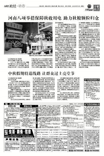 河南八项举措保障秋收用电 助力秋粮颗粒归仓