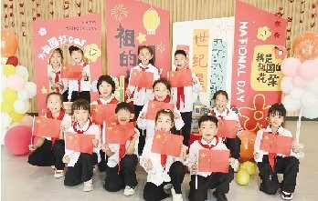 鲜艳的红旗、一串串写满祝福的千纸鹤、可爱喜庆的留影牌……老师和“世纪星”们将浓厚的国庆氛围装点在学校的每一处。