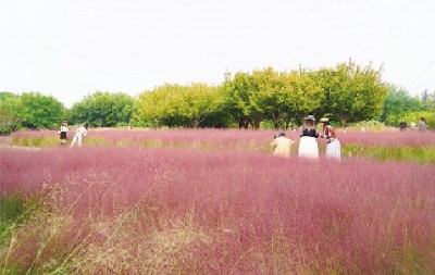 除了红枫,公园百花苑的粉黛乱子草也是一大亮点。成片的粉黛乱子草在微风中轻轻摇曳,粉色花穗如轻盈的云朵铺展开来,覆盖了整个草地,营造出梦幻般的景致。漫步其中,仿佛置身于童话世界,让人流连忘返。
