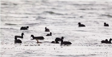 在民权黄河故道国家湿地公园,上千只骨顶鸡、绿头鸭、豆雁等候鸟聚集在这里,它们或在湿地悠然觅食,或在湖面,为初冬时节的湿地增添了勃勃生机。