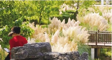 清潩河沿岸的人工湿地上,大片芦苇随风摇曳。人们走在栈道上面,可以欣赏两边的水生植物,倾听青蛙、水鸟等的 “歌声”,怡然自得。