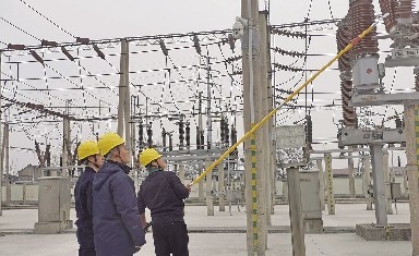 此次演练模拟在接到低温雨雪冰冻灾害Ⅰ级响应后,演练人员立即对室外变电设备展开特巡,在发现110千伏城西变电站Ⅰ鹅城1间隔设备出现“覆冰”情况后,他们立即组装专用绝缘除冰工具进行“除冰”。