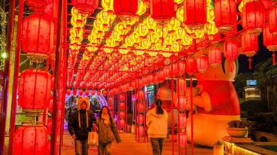 在正弘城商圈记者看到,广场周围的树木枝干上悬挂360盏中式宫灯,在楼体大屏上播放动画进行宣传,花坛与绿植间,融入了花卉和生肖蛇元素的造型装饰灯隐匿其中,五彩花卉与灵动的生肖灯相互映衬,更加绚丽多彩、吉祥喜庆,增添浓浓的新年暖意。