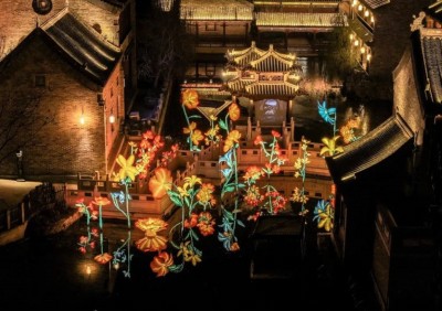 “元宝迎春”灯组、“盘古开天”“女娲补天”“嫦娥奔月”等神话传说灯组、“花花世界”“荷塘月色”等氛围灯组