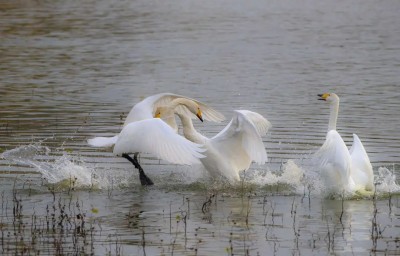 雨水前后,湿地冰雪渐融,湖水泛起涟漪,天鹅或振翅高飞划破长空,或悠然游弋于碧波之上,与初生的芦苇、萌动的柳芽共谱春日序章。