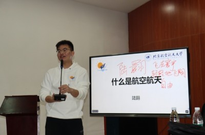 “大家可以猜猜我名字里这个‘翾’字是啥含义”,这是陆翾在“什么是航空航天”课堂上的第一句话。从名字中“低空飞翔”之意说起,陆翾结合“航”字的本意行舟横渡向同学们深入浅出地阐释了航空和航天的区别,由此出发,带领同学们走进了航空航天探索之旅。