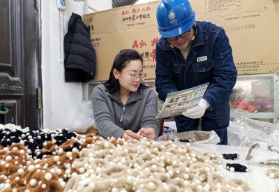 4月8日,沁阳市紫陵镇坞头村的皮筋头饰产业园内,机器轰鸣,工人们正在紧张忙碌地生产,车间门口,一包包皮筋头饰整齐地堆放着,等待运往国际国内市场。国网沁阳市供电公司神农山中心供电所紫陵服务站的供电服务人员正忙着对皮筋生产车间内的用电设备进行全面“体检”。