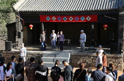 游客在“团长”的指挥下,手持道具武器,如大刀和手枪等,向着“县城”进发,与“敌军”展开“战斗”。成功“夺回县城”后,游客还能体验全城庆祝的场面。