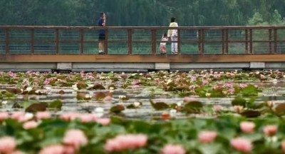 北龙湖的睡莲种植区在龙湖北岸,沙滩公园的东南角,清华附中的正南方,种植面积较大,从6月初开始,睡莲便逐渐绽放,这里的睡莲分品种种植,木栈道把水面分成几个区域,有一个区域主要是淡橙红色,有一个区域主要是黄色,还有一个区域以粉色为主,也有几个区域为杂色间种,这里视野开阔,风景极好。