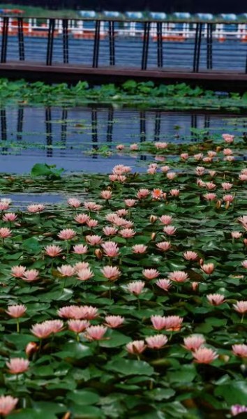 龙子湖的湖畔公园里,睡莲和北龙湖的有些相似,同样是木栈道环绕睡莲池,观赏方便,拍照好看。每年夏季,公园内成千上万的睡莲竞相绽放,给湖面增添了一抹浪漫的色彩。这里的睡莲为混合种植,木质栈道在水面上蜿蜒,走在栈道上,仿佛置身于水中央、花中央。