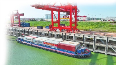 “单船载箱量的成倍增加,意味着内河航运物流成本的大幅降低和运输效率的大幅提升。”信阳市淮河港口集团总经理董林说,河南内河航运船舶的大型化,更加凸显淮滨中心港坐拥淮河主航道、成为河南通江达海门户港口的优势地位,也推动淮河主航道通道经济加速向经济通道转变,加快打造豫货出海、航运全球的新通道。
